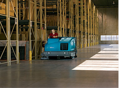●坦能 M30 駕駛式掃洗一體機只需一次通過即可完成清潔,降低了使用成本