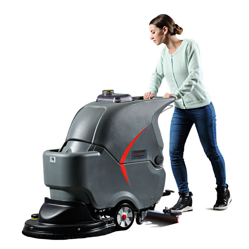 GM56B洗擦、吸干一次性完成,洗刷吸干過的地面,潔凈如新,臟水、泥土、沙粒、油污統統吸入污水箱。簡化清潔工作,大大減少清潔勞累和作業時間;快速解決地面上的污垢,顯著提高清潔衛生質量。特別適合500m2-1000m2場所使用。